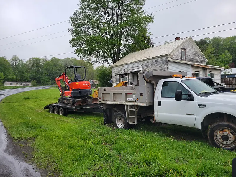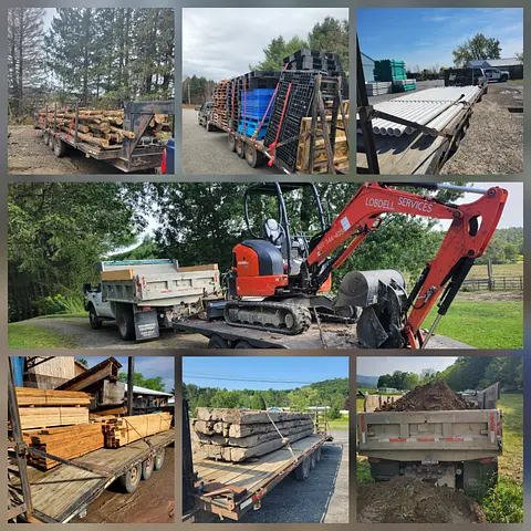 Providing dump truck services up to 4 yards or 5 tons of materials.